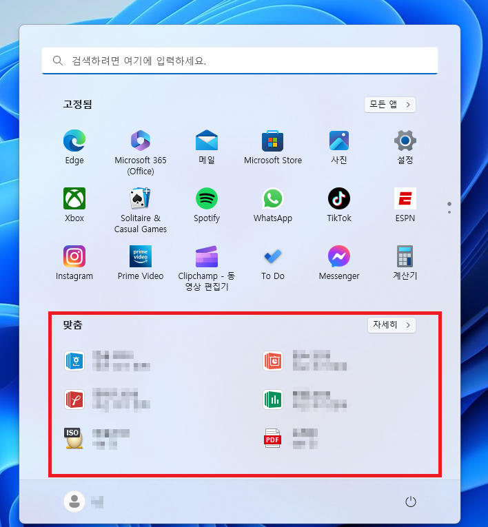 3. 최근에 추가된 앱 표시 와 시작 메뉴, 점프 목록 및 파일 탐색기에서 최근에연 항목 표시를 [끔] 으로 변경